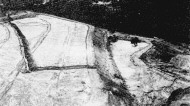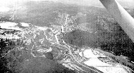 Overhead view of the tailings waste dumps at both ends of town. These dumps were an extreme health hazard